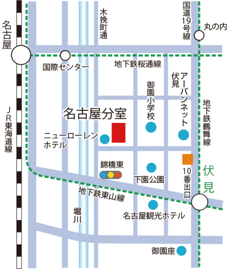 地下鉄鶴舞線・東山線「伏見」10番出口 徒歩約5分