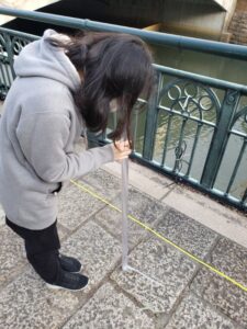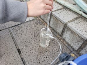 2023年11月29日(金)の科学講座では、事前調査で計画を立てた堀川での水質調査を実施しました。まず初めに、気温・水温、臭気、色、透視度(cm)を確認しました。また、pHとCODをそれぞれ簡易的な手法(pH試験紙、パックテスト)を用いて調べました。