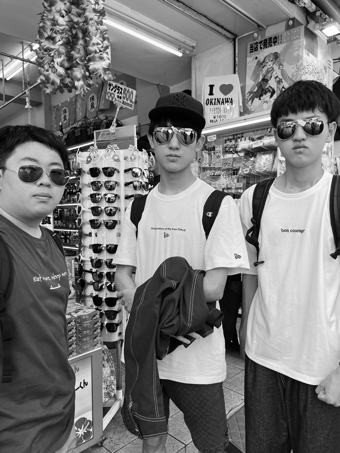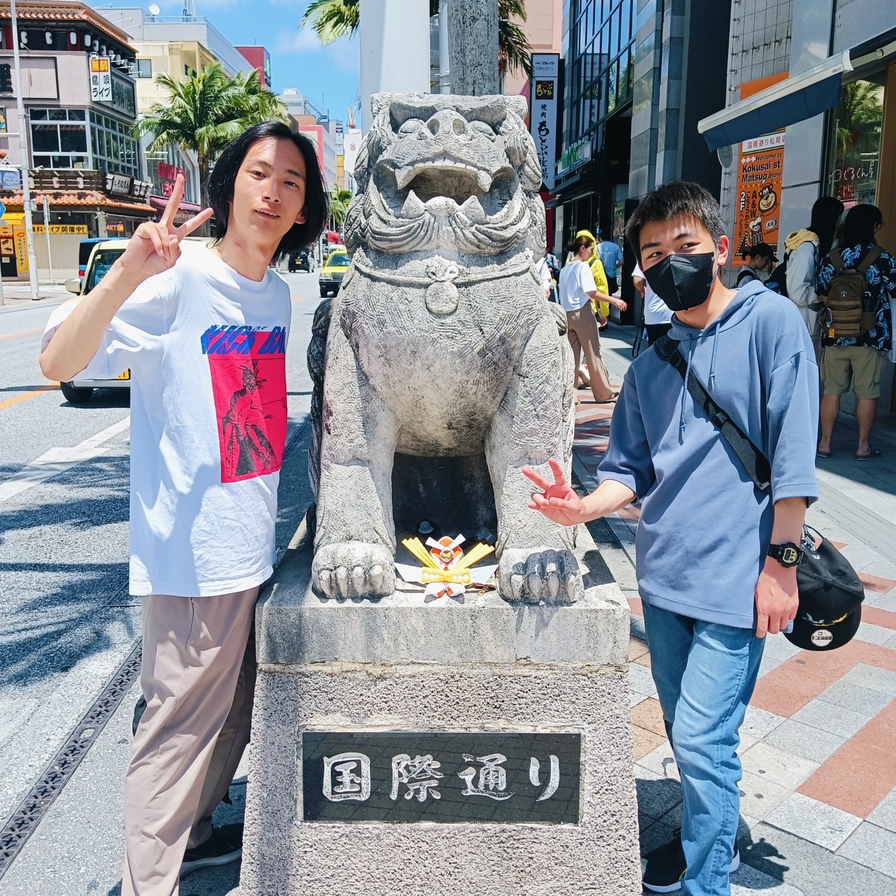 国際通り。サングラスを購入しての1枚も決まってます。お土産の買い物や沖縄ならではの食事に夢中で写真が少ない様子です。これからフライト、名残惜しいですが、報告終了。
