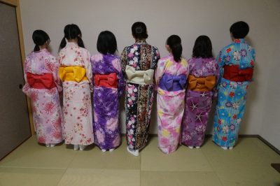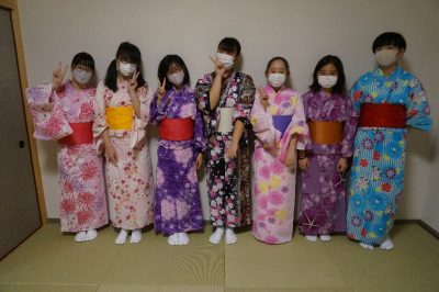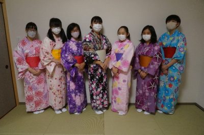 10月27日の1年生の着付け講座では帯の結び方を学びました。初めて自分で浴衣を着る生徒も多いですが、3回目ともなると慣れてきて綺麗に着こなせました。初めての帯結びも上手にできました。