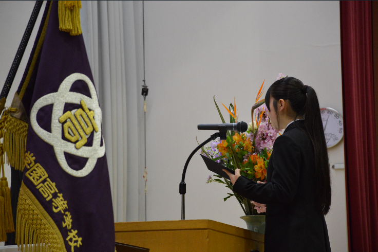 春のやわらかな日差しのもと、校舎の桜も満開となり、新入生を迎えることができました。式典は、厳粛な中にも学校としての歓迎の気持ちを込めた温かな雰囲気で進められました。