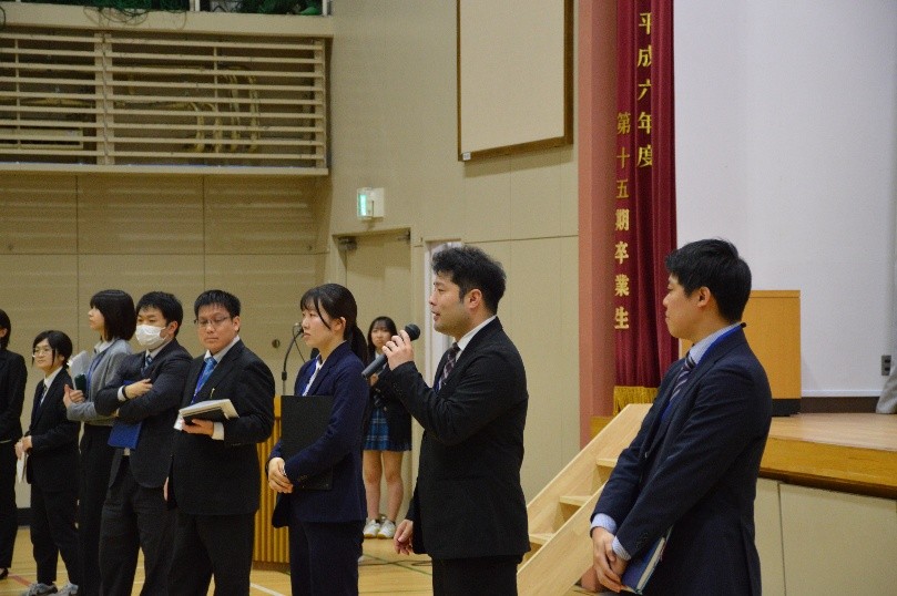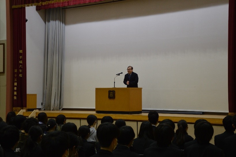 副校長先生からは、本年度から新たに先輩となる2年次生、そして本年度が高校生活最後となる3年次生に向けて、それぞれどのように学校生活を過ごすべきか、お話がありました。木の幹の断面にみられる年輪のように、この1年間で成長を積み重ねていってほしいという言葉に、生徒たちは真剣な表情で耳を傾けていました。また新たなクラスと担任の発表もあり、新年度に向けて期待感が高まるような様子が見られました。