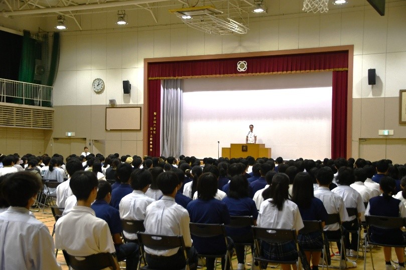 校長先生からは、人との関わりにおいて相手を尊重し、良好な関係を築いていくことの大切さについてお話がありました。日々の学校生活やこれからの歩みにも通じる内容であり、生徒たちは真剣に耳を傾けていました。
